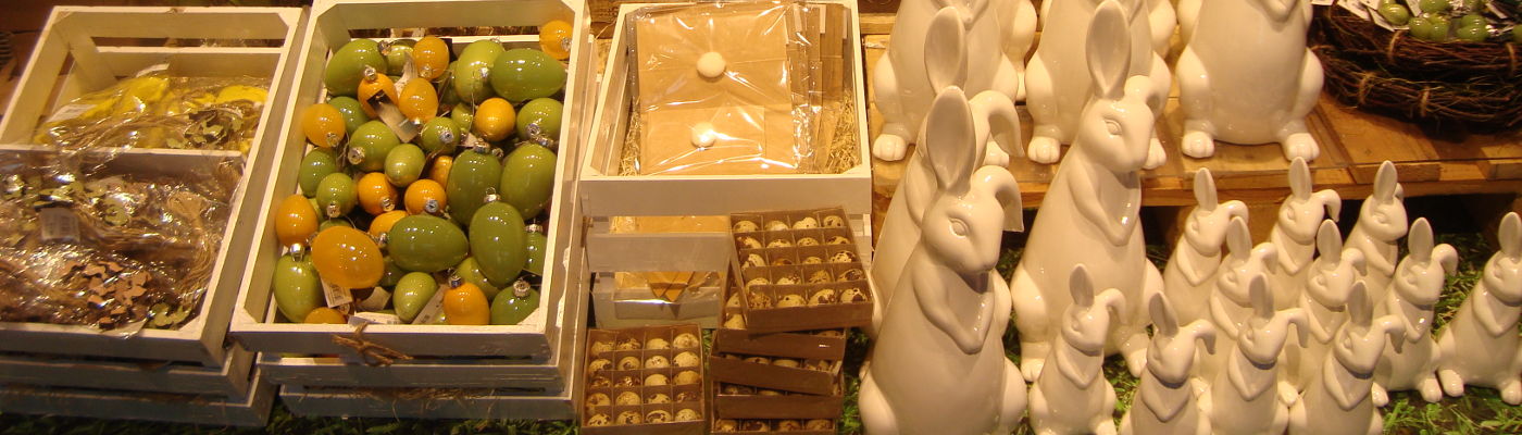 La mesa también se decora de forma especial para la pascua, porque es el lugar donde se reúne toda la familia a degustar los platillos típicos de esta temporada, desde el desayuno hasta la tarde de “Kaffee und Kuchen”. Como es de esperarse, las tiendas aprovechan esta tradición para ofertar diversos artículos para la mesa; desde tazas, platos y cubiertos hasta servilletas con figuras alusivas a la primavera.
